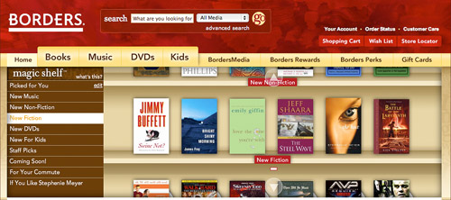 6 Borders, distributeur américain, s’est lancé en 2008 dans une concurrence frontale avec Amazon à grand renforts d’interfaces riches.