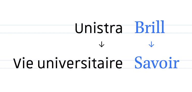 Figure 7.2 - Extrait du « langage visuel » de l’université de Strasbourg, 2016 : « Contenus de la vie pratique et du savoir s’articulent continuellement à l’université. L’Unistra a donc été conçue sur la même hauteur de lettre que la police Brill, permettant une continuité visuelle entre les deux caractères pourtant très différents. » Source : Ibid.