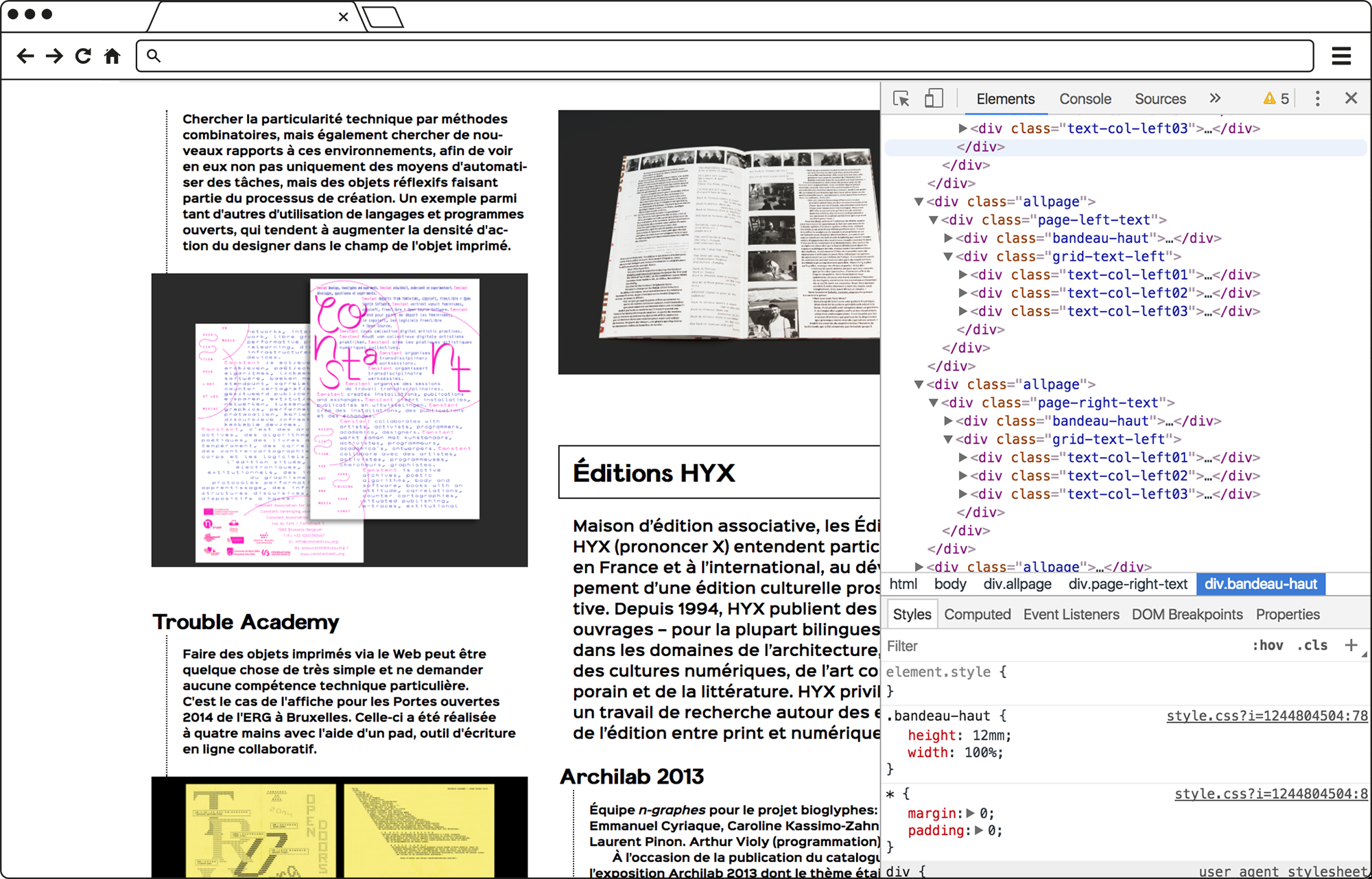 120 Raphaël Bastide, « Monoïde. Documenter les productions typographiques des écoles d’art », Paris, B42, Back Office, no 1 « Faire avec », février 2017, http://www.revue-backoffice.com/numeros/01-faire-avec/raphael-bastide-monoide