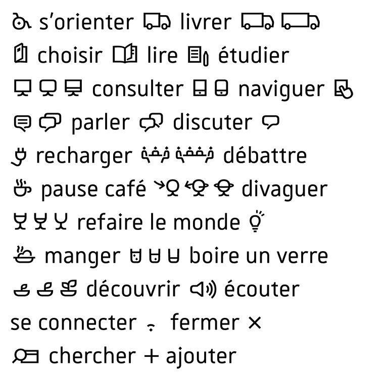 Figure 7.3 - Extrait du « langage visuel » de l’université de Strasbourg, 2016 : « Les pictogrammes sont intégrés à la police de caractères ‹ Unistra Symbol › permettant de saisir facilement, depuis le clavier, les pictogrammes sous les logiciels de bureautique. » Source : Ibid.