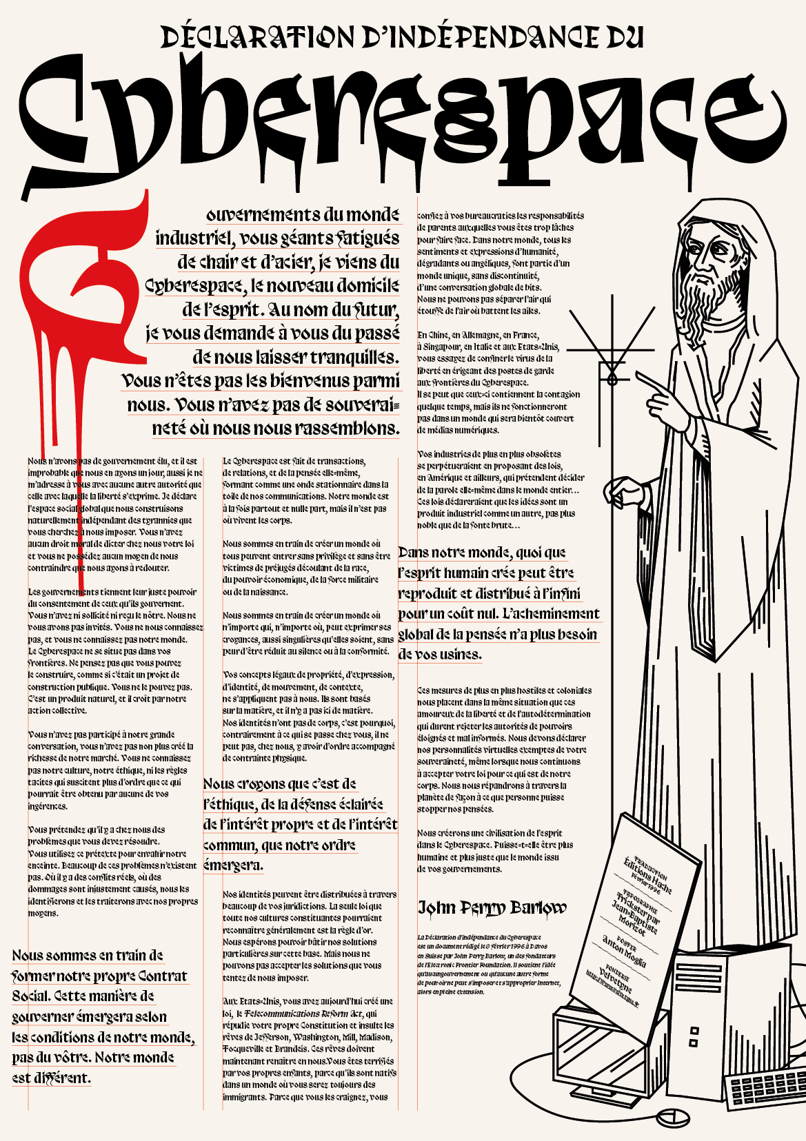 Des dynamiques d’opposition vont se constituer afin de « libérer » l’espace informatique du bridage économique limitant les capacités d’ordre créatif. Des groupes comme le Chaos Computer Club (fondé à Berlin en 1981) vont devenir le creuset d’une « culture hacker », à savoir des personnes qui ne travaillent pas pour « l’évolution des technologies existantes, mais [à] la découverte de failles [holes] dans les technologies existantes, et [à] la projection d’un potentiel de changement à travers ces failles 11 Alexander R. Galloway, Eugene Thacker, The Exploit. A Theory of Networks, Minneapolis, University of Minnesota Press, coll. Electronic Mediations, 2007, p. 81. Trad. des auteurs. ». Cette capacité d’ingéniosité opérée au sein de systèmes techniques a priori fermés (« propriétaires ») rejoint l’idée d’une « libération » de l’assignation de la technique à des valeurs économiques ; c’est ce qu’on appelle la « culture (du) libre » (en anglais : free culture).