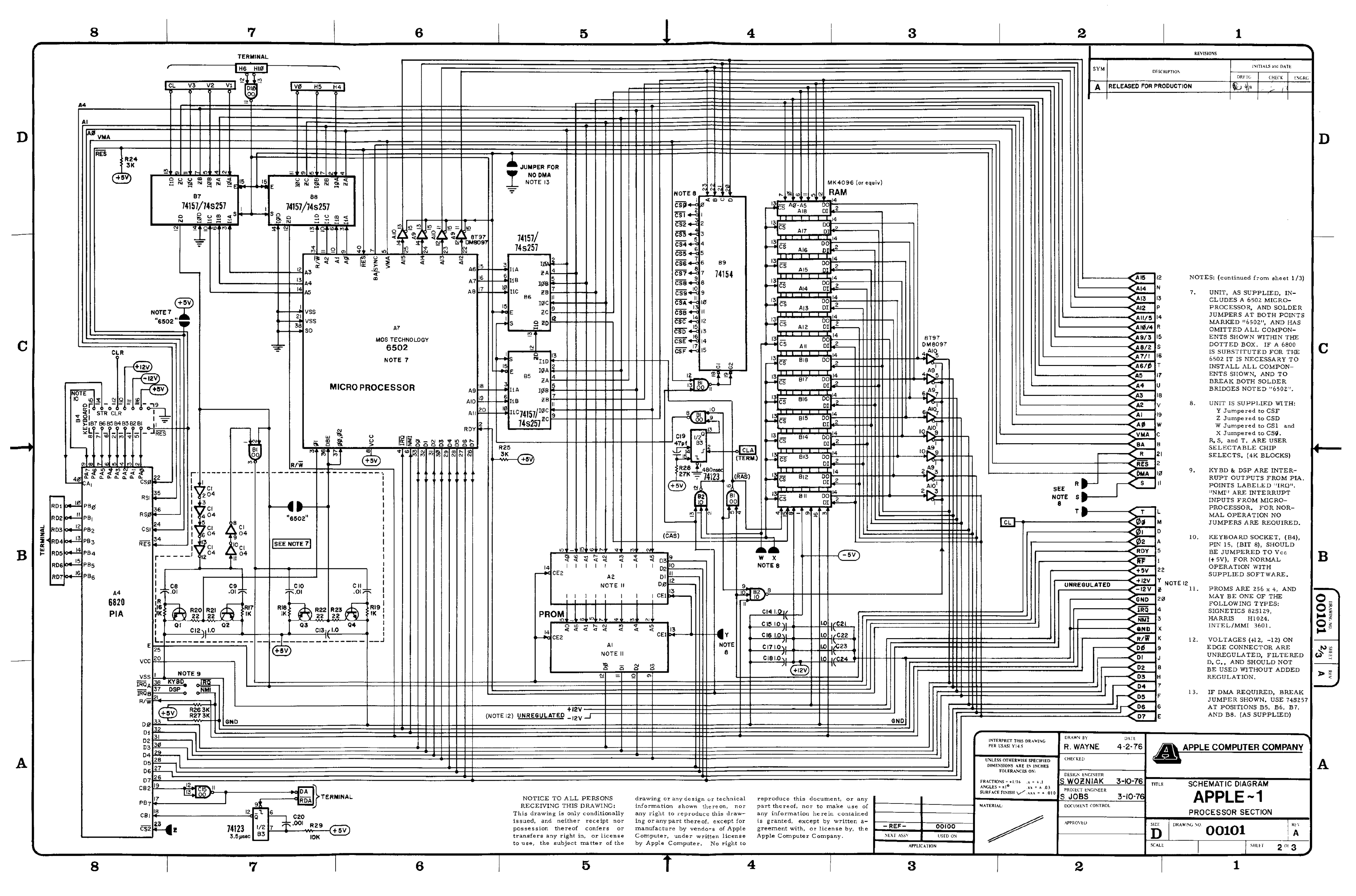 Figure 1 - Plan de montage du processeur de l’ordinateur Apple 1, conçu par Steve Wozniak en 1976. Cette image est extraite du mode d’emploi, qui comprenait également un guide de programmation informatique. Sous couvert de facilité d’usage, les machines ultérieures de cette marque ne permettront plus une telle liberté. Source : https://archive.org/details/Apple-1_Operation_Manual_1976_Apple_a/page/n13