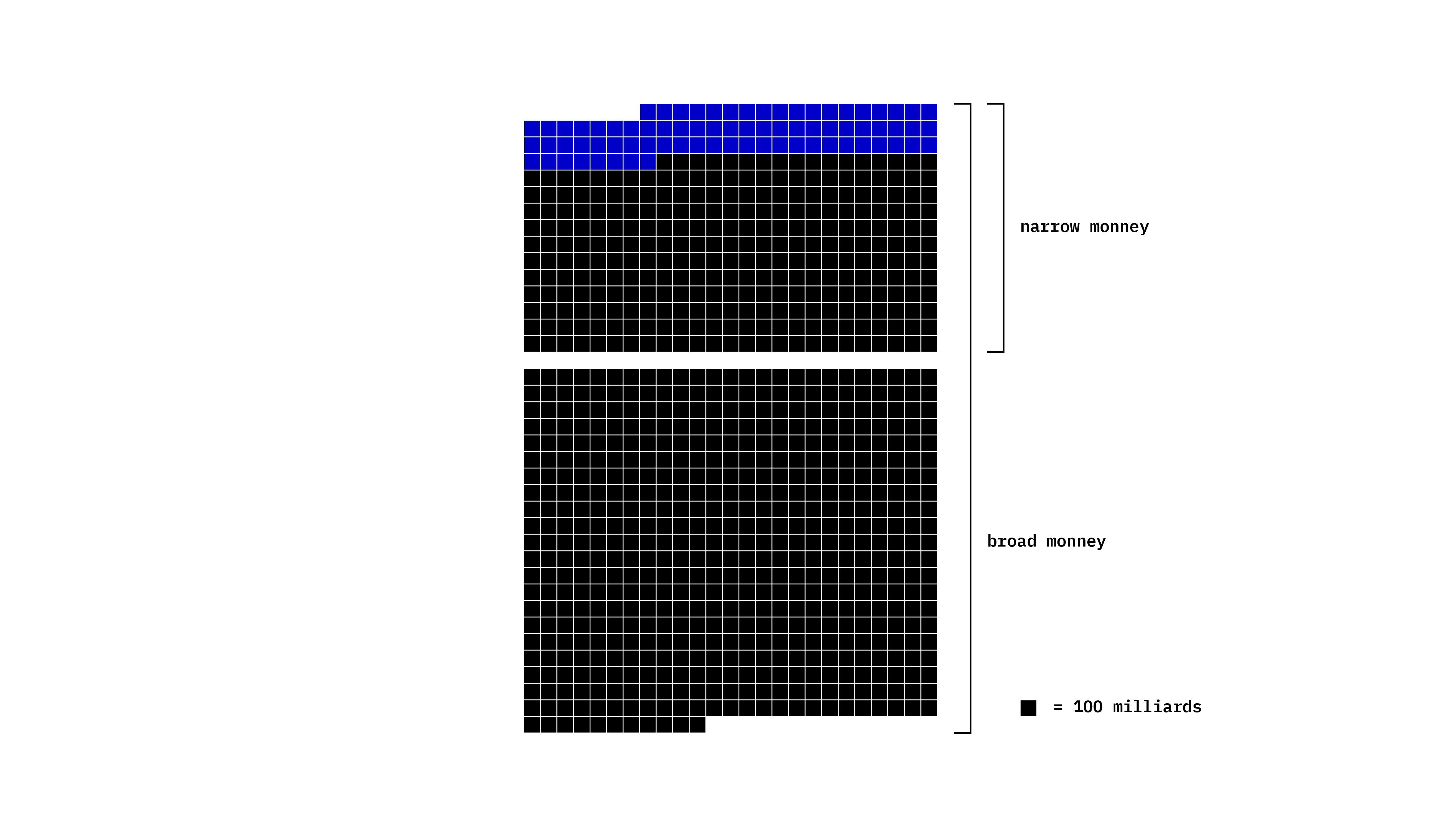 Figure 5.2 - Ces mêmes 8% ‹ physiques › ne représentent en réalité qu’une infime partie de tout l’argent du monde, soit environ 0.4%. Source : Ibid.