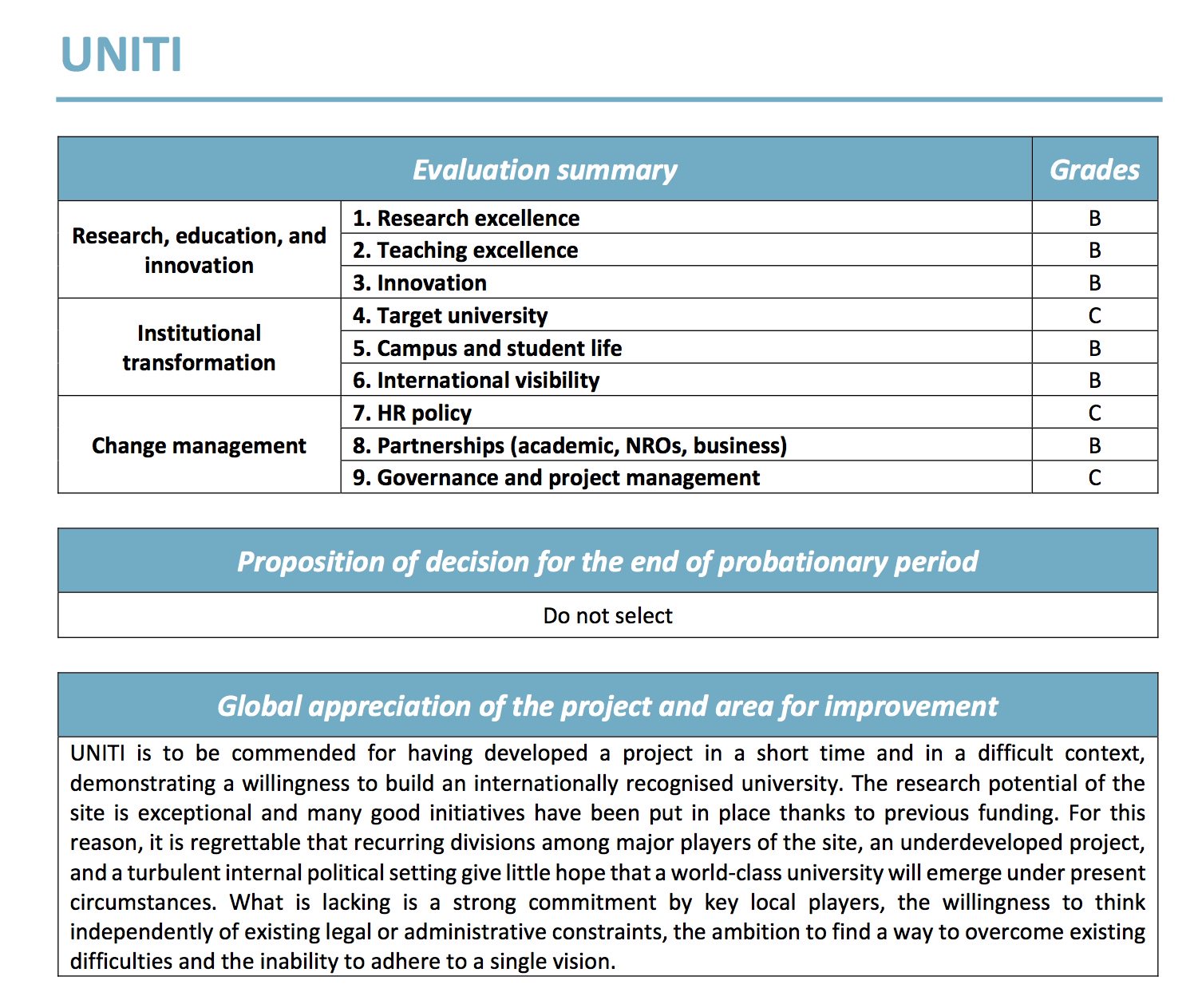 « Évaluation » négative du projet Idex UNITI, Toulouse, mars 2018