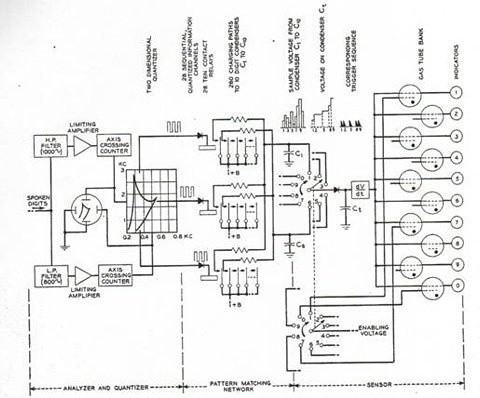 Audrey (Bell Laboratories, 1952) : reconnaissance des chiffres 0 à 9