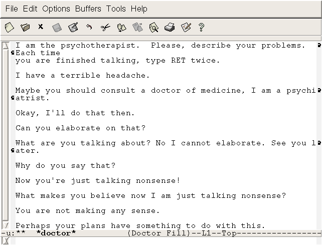 ELIZA (Joseph Weizenbaum, 1964) : simulation textuelle d’un psychothérapeute
