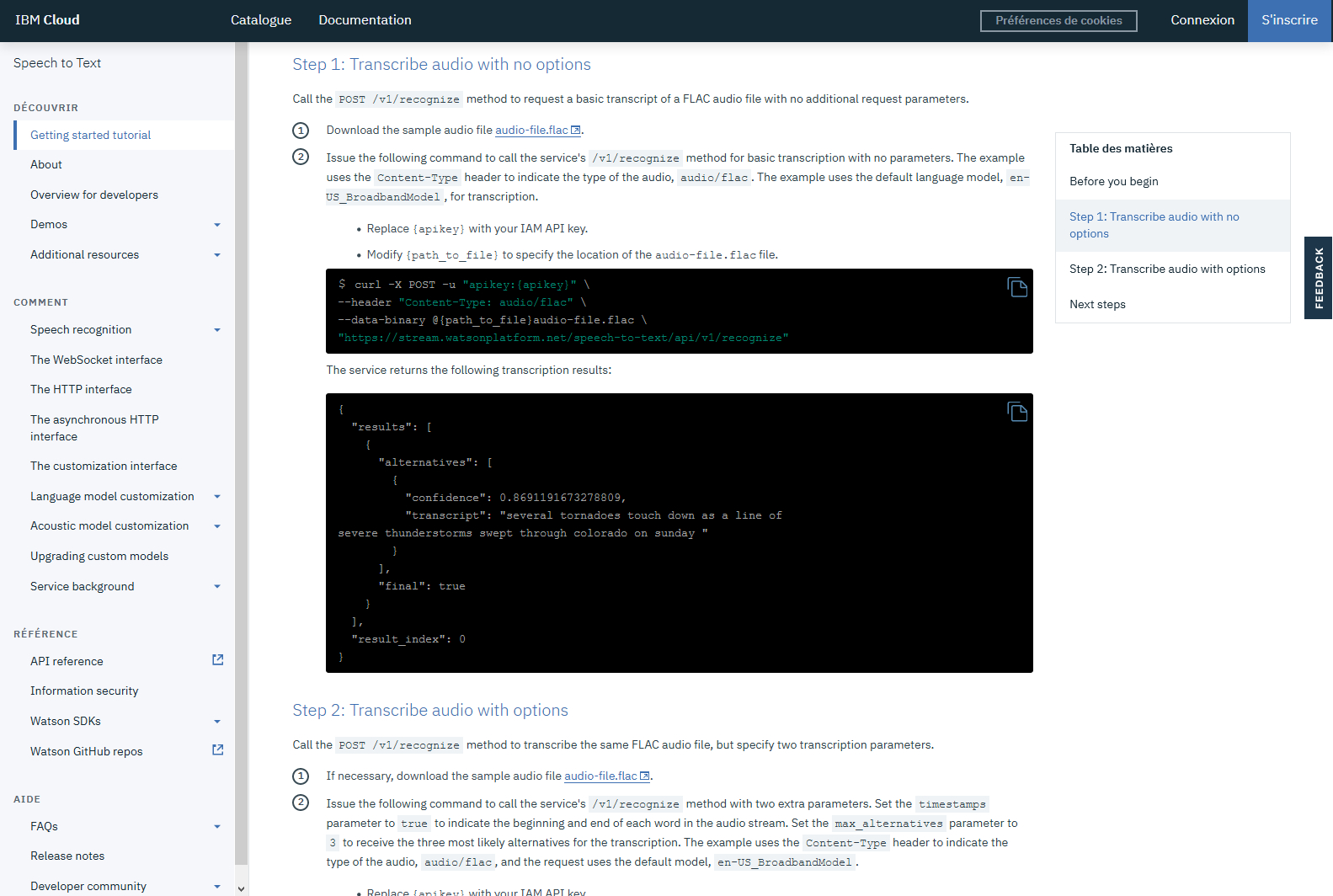 Speech to Text (IBM Watson cloud, 2018) : voice as a service
