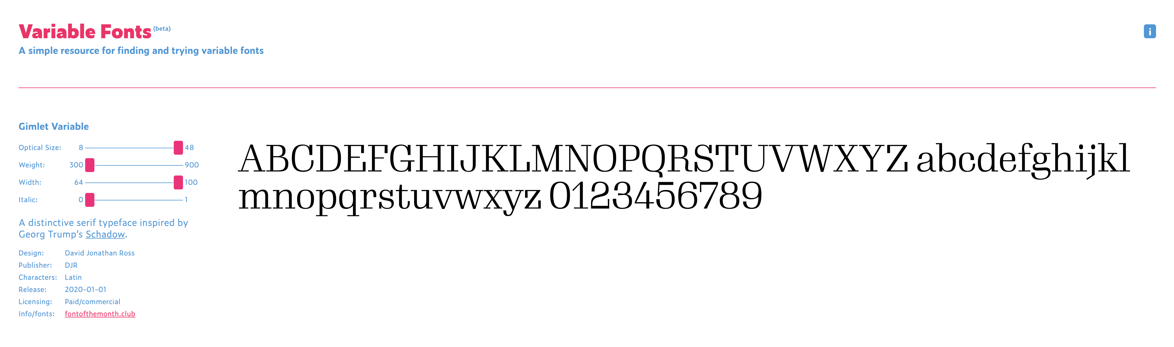 Gimlet Variable, police de caractère variable, David Jonathan Ross, janvier 2020