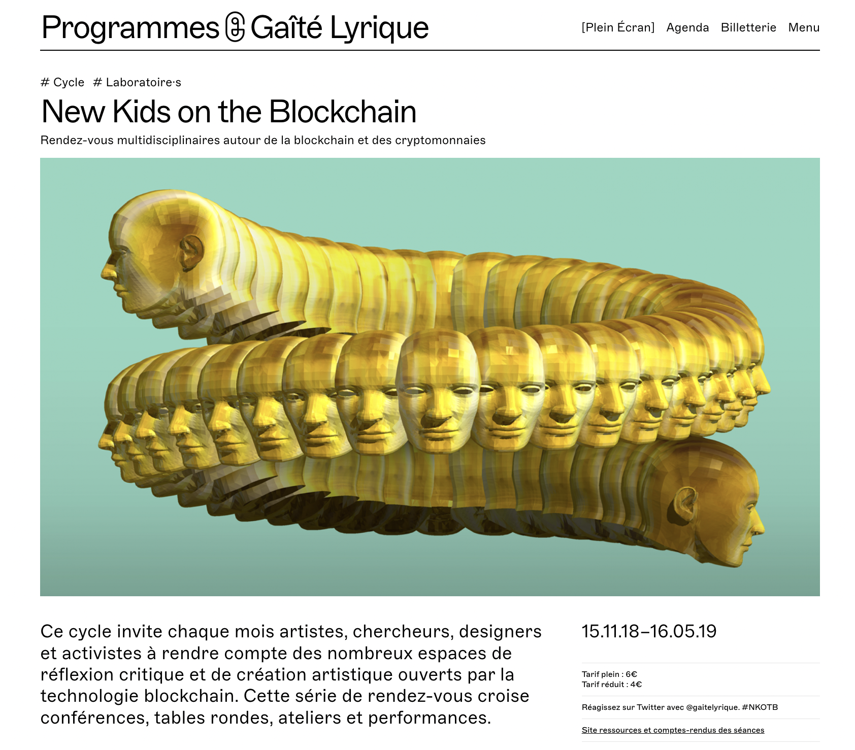 M. Lechner, A. Masure, C. Seurat, « New Kids on the Blockchain », Paris, Gaîté Lyrique, 2018-2019