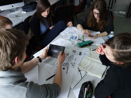 Les projets ont été menés par groupes de 5, avec pour chaque équipe un éditeur, un graphiste, un développeur et un coordinateur. Le rendu devait comprendre un prototype fonctionnel, ainsi qu’un dossier de faisabilité (rétroplanning, budget fictif, technique, etc.). L’enjeu était de construire son propre projet plutôt que de se placer dans une posture d’exécution : un vrai entraînement au projet pro de deuxième année !
