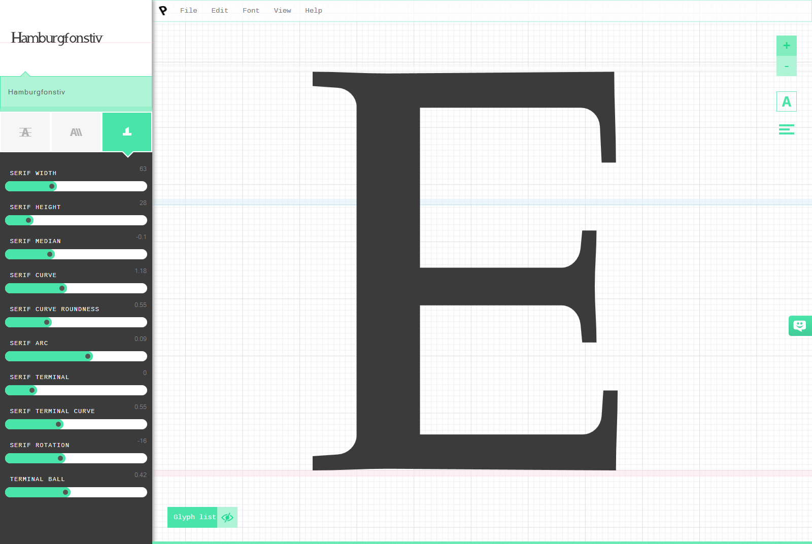 Réalisé à l’origine sous Processing, l’interface de création typographique Prototypo 48 Yannick Mathey et Louis-Rémi Babé, prototypo.io, travail en cours de réalisation. Prototypo est désormais développé en HTML5 AngularJS et SVG. Dans le même registre, voir aussi les expérimentations du studio LettError. de Yannick Mathey s’émancipe d’une construction lettre par lettre de la fonte. L’utilisation d’algorithmes permet de manipuler en temps réel des formes dynamiques, les changements formels étant répercutés sur l’ensemble de l’alphabet. Le programme permet également d’indiquer des «limites» aux bonnes règles typographiques, sans que celles-ci ne freinent la création. Depuis des dizaines d’années, les apports du numérique au champ de la typographie ont été fructueux. Il reste beaucoup à apprendre d’initiatives comme l’Unified Font Object ou Metafont 49 David Vallance a présenté, aux Rencontres internationales de Lure 2013, le travail de découverte et d’appropriation du programme Metafont, qu’il a mené dans le cadre de son diplôme national d’Art et technique à l’Ésad Grenoble-Valence..