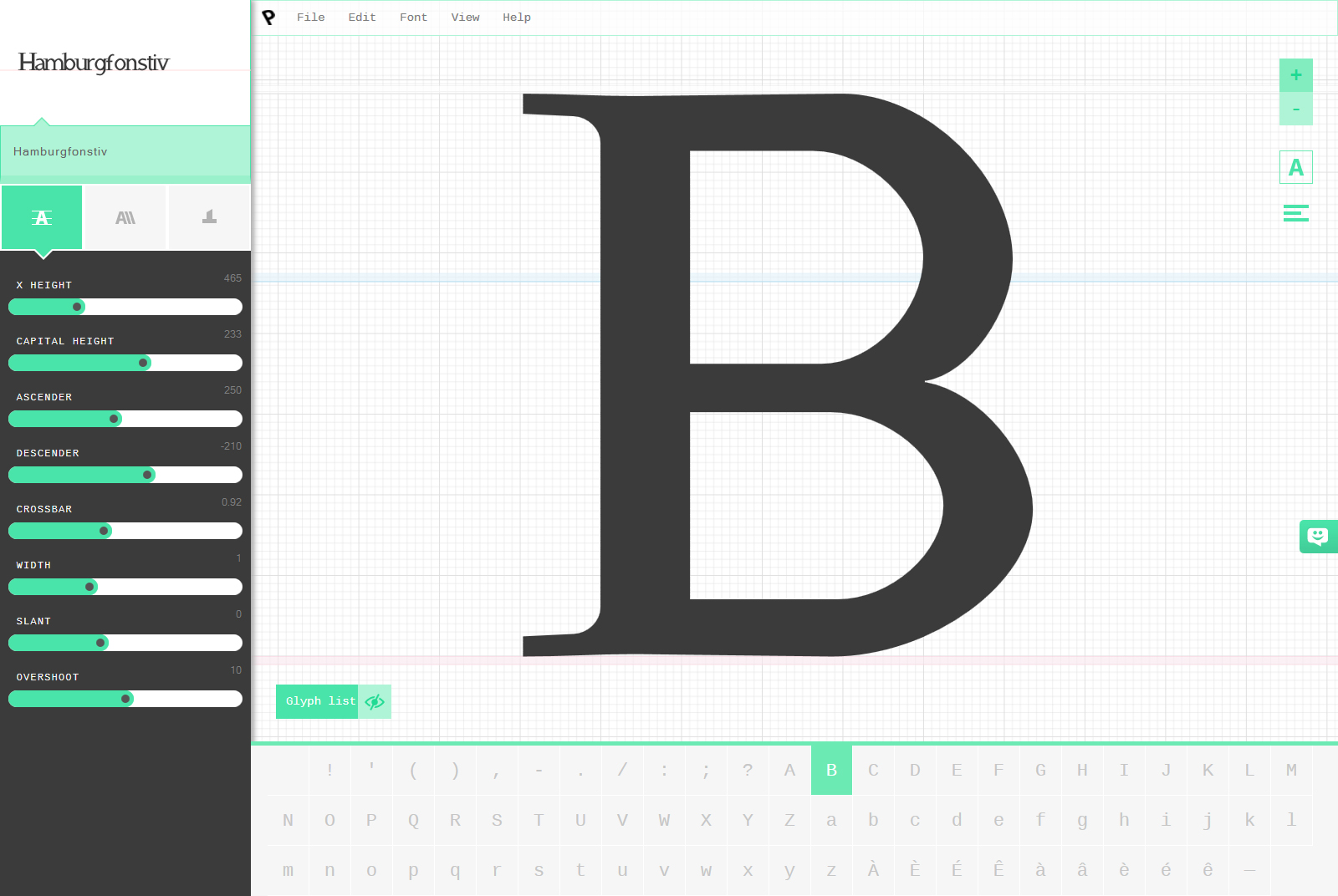 48 Yannick Mathey et Louis-Rémi Babé, prototypo.io, travail en cours de réalisation. Prototypo est désormais développé en HTML5 AngularJS et SVG. Dans le même registre, voir aussi les expérimentations du studio LettError.