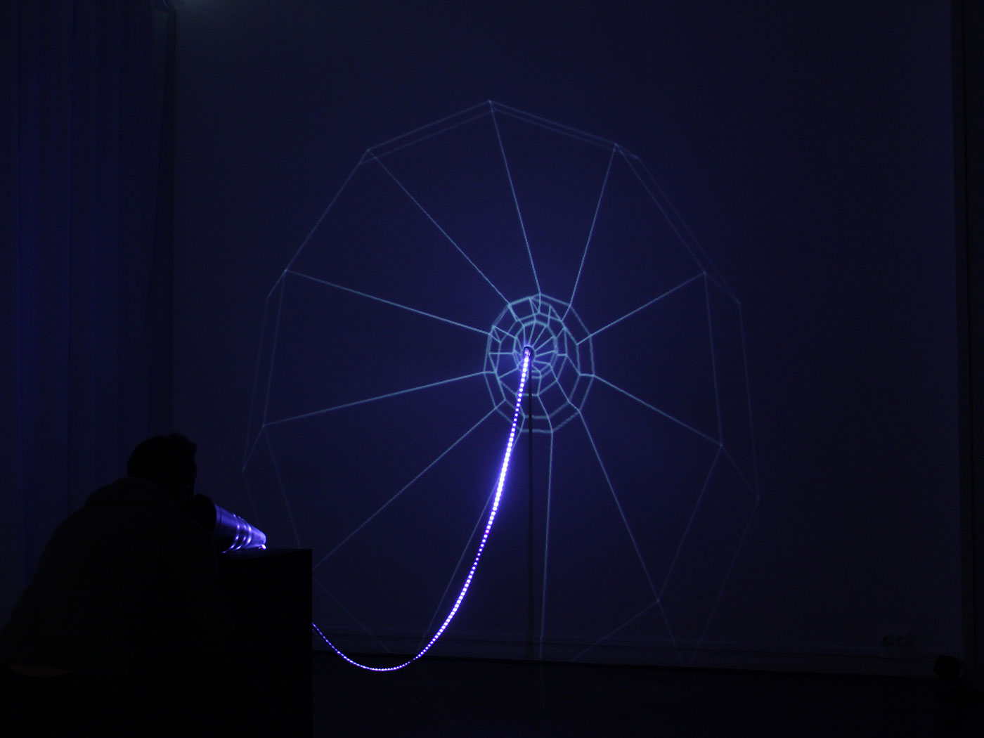 46 m-u-r-m-u-r.me. Projet réalisé en collaboration avec 2Roqs, Polygraphik et Splank. Technologies employées : OpenFrameworks, Javascript, bandes LED. Processing avait été utilisé pour les premiers prototypes de Murmur.