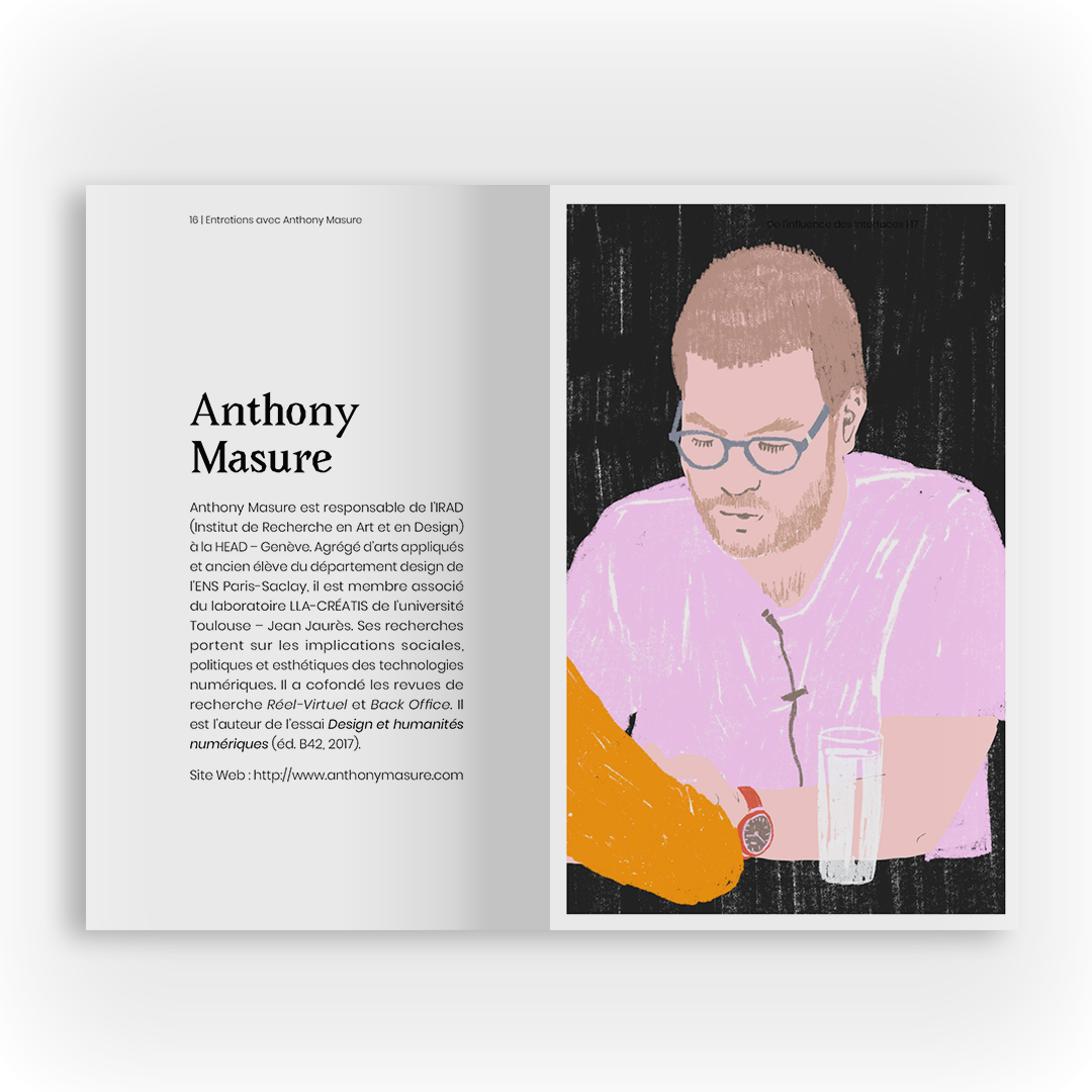 Anthony Masure : Pour la plupart des gens, il y a une confusion entre ce qu’est une interface et un programme numérique. Un programme, c’est basiquement une suite d’instructions rédigées dans un langage de programmation exécutable par une machine. Une interface, elle, est une médiation graphique et technique permettant à un être humain d’accomplir un certain nombre de tâches plus ou moins facilement. Ce n’est donc pas la même chose !