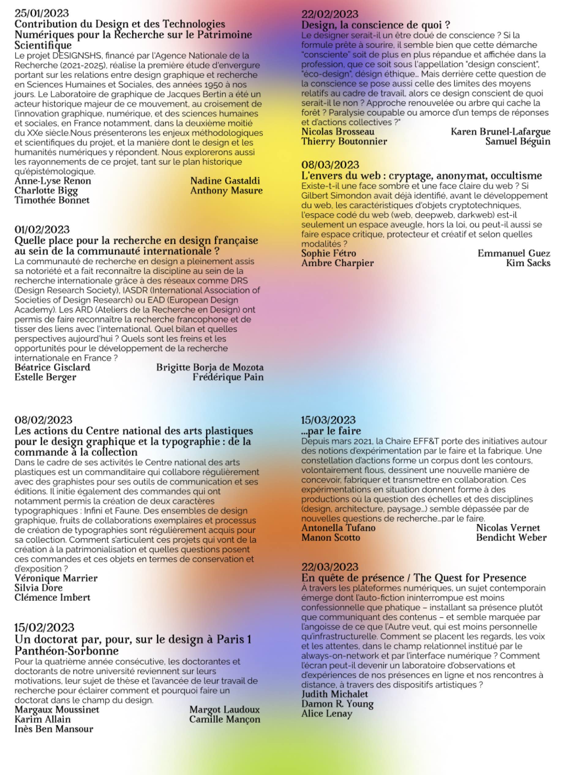 Conférence donnée dans le cadre du cycle de conférences sur le design dirigé par Catherine Chomarat-Ruiz, session « Contribution du design et des technologies numériques pour la recherche sur le patrimoine scientifique » à l’initiative de Anne-Lyse Renon, Paris, Université Paris 1 Panthéon-Sorbonne.
